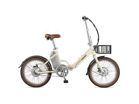 Bicicleta eléctrica plegable FABRICBIKE Volt 20” en color crema, con motor 250W, batería extraíble 36V, 5 niveles de asistencia y freno de disco. Ligera, compacta y perfecta para la ciudad.