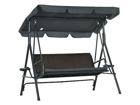 Columpio de Jardín OUTSUNNY 3 Plazas con Toldo Reclinable, Ratán PE y Acero, Cojín y Bandejas, Gris Oscuro 143.50 €Comparar