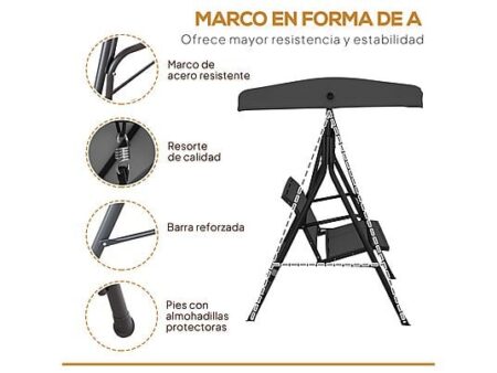 El columpio de jardín OUTSUNNY 84A-234BK es un cómodo balancín de 3 plazas ideal para relajarse en el jardín, terraza o patio. Cuenta con estructura de acero resistente, asiento de textileno transpirable y toldo reclinable que protege del sol. Su diseño estable con laterales en forma de A soporta hasta 200 kg, ofreciendo comodidad y seguridad al aire libre.