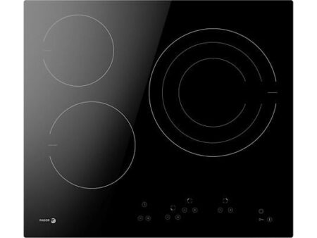 Placa vitrocerámica Fagor 3VFT-330AC de 3 zonas y zona triple, 59 cm, negra, integrable, con función Booster, bloqueo infantil y temporizador. Perfecta para cocinar rápido, seguro y con control táctil.