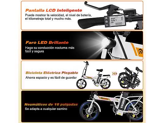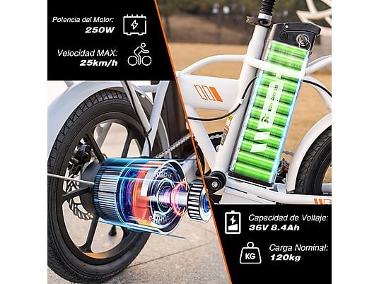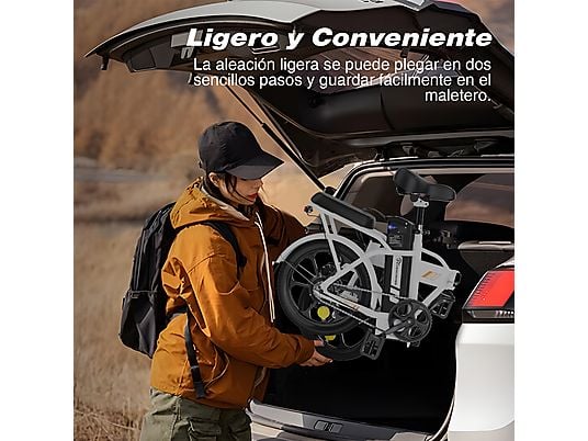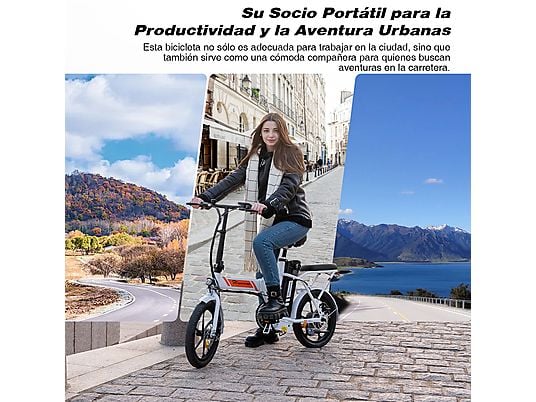 Bicicleta eléctrica plegable EVERCROSS EK5 16" Blanca – Motor 250W, Batería 36V 8.4Ah, 3 Modos de Asistencia, Frenos de Disco, Autonomía 25-45 km