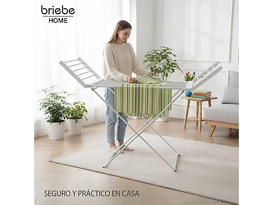 El tendedero eléctrico BRIEBE CD1183 es la solución perfecta para secar tu ropa de forma rápida, cómoda y eficiente durante todo el año, sin depender del clima. Gracias a sus 18 tubos calefactores integrados, acelera el proceso de secado, siendo ideal para interiores, días lluviosos o viviendas sin balcón.