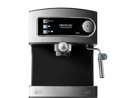 Cafetera express Cecotec con 20 bares de presión, vaporizador orientable y depósito de 1,5L. Ideal para espresso y cappuccino con crema perfecta en casa.
