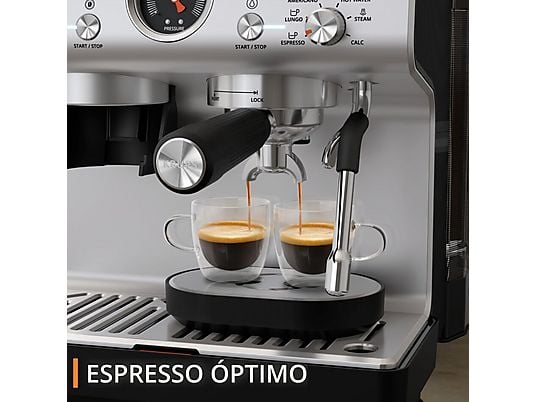 Cafetera express Breville Barista Max+ VCF152X con molinillo Tap&Go™, 30 niveles de molienda, 15 bar, 1600 W y pantalla LED. Incluye accesorios y capacidad para hasta 3 tazas.