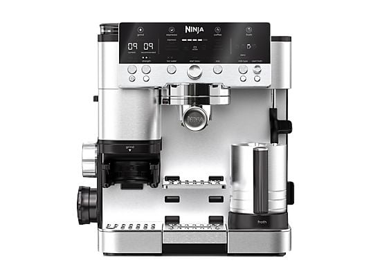 • Cafetera Express con Molinillo Ninja Luxe Café Premier ES601EU 3 en 1, 9 Bar, 1650 W, 25 Ajustes de Molienda, Espuma Doble, 2 L, Plata