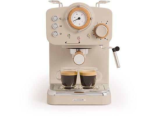 Cafetera Express CREATE Thera Retro 15 bar 1100 W, Doble Salida, Vaporizador Orientable, 1.25 L, Café Molido/ESE, Marrón