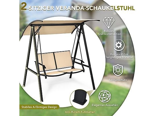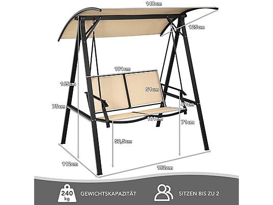 Columpio de jardín NORTHIO 2 plazas con dosel ajustable, estructura metálica resistente y asiento transpirable. Ideal para jardín, patio o terraza.