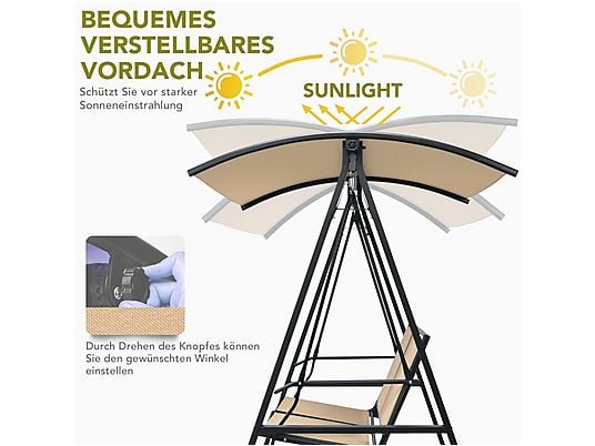 Columpio de jardín NORTHIO 3 plazas con toldo ajustable, estructura de acero y cojines incluidos. Resistente, cómodo y perfecto para exterior.