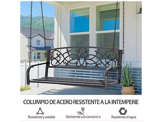 Relájate y disfruta de tu jardín, patio o terraza con el elegante columpio de jardín OUTSUNNY 84A-263V00BK. Este banco columpio de dos plazas combina comodidad, estilo y durabilidad para ofrecerte un espacio perfecto de descanso al aire libre.