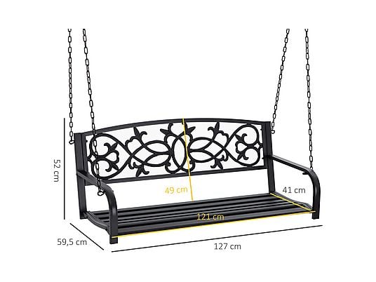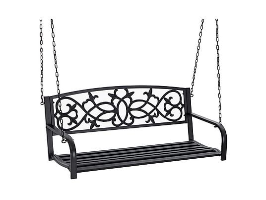 Columpio de Jardín OUTSUNNY 2 Plazas Negro, Banco Colgante de Acero con Cadenas, 127x59,5x52 cm, Capacidad 240 kg