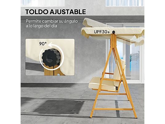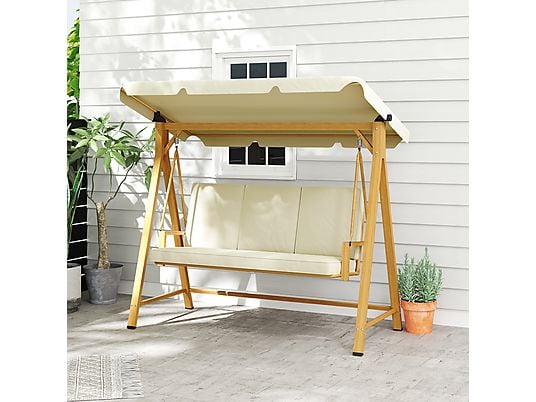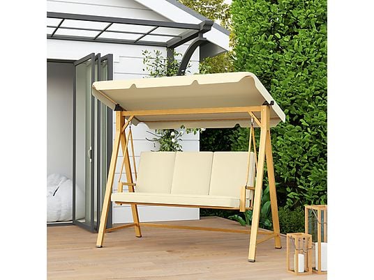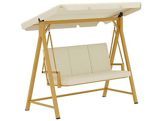 Columpio de Jardín OUTSUNNY 3 Plazas con Toldo Ajustable 195x120x170 cm, Metal y Poliéster, Beige