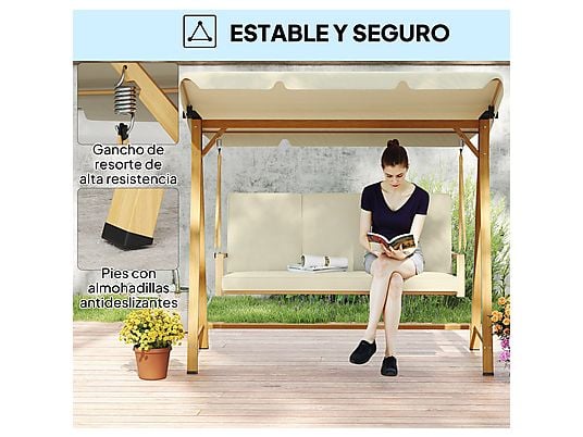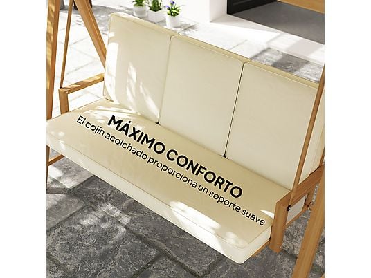 Disfruta de momentos de relax al aire libre con el columpio de jardín OUTSUNNY 3 plazas. Diseñado para ofrecer comodidad, resistencia y estilo, es perfecto para jardines, terrazas o patios.