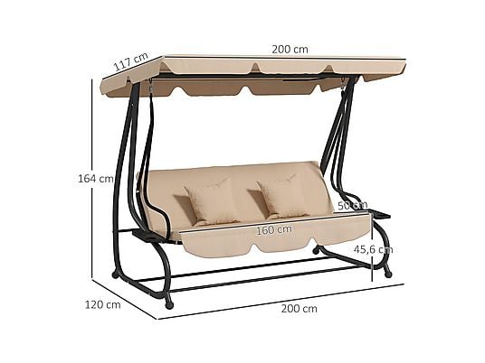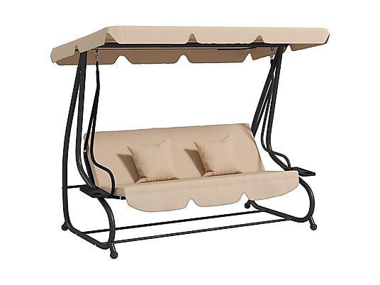 Columpio de Jardín OUTSUNNY 84A-050V02SD Balancín 3 Plazas Convertible en Cama con Toldo Ajustable, Acero y Poliéster, 200x120x164 cm – Arena