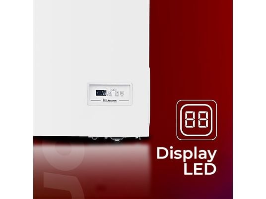 Congelador horizontal Nilson de 98L con sistema Dual Cooling que permite usarlo como congelador o refrigerador. Silencioso (40 dB), con control electrónico, display LED y diseño compacto en color blanco.
