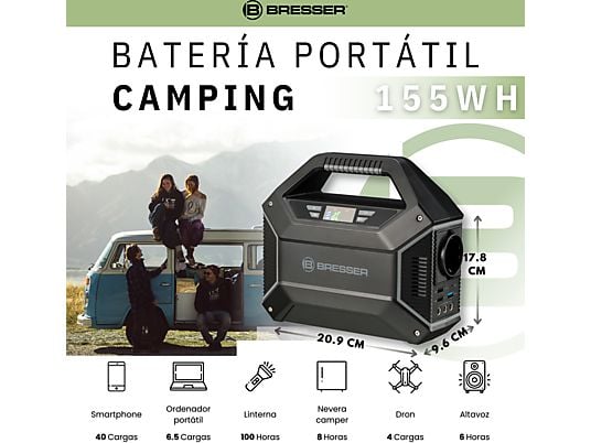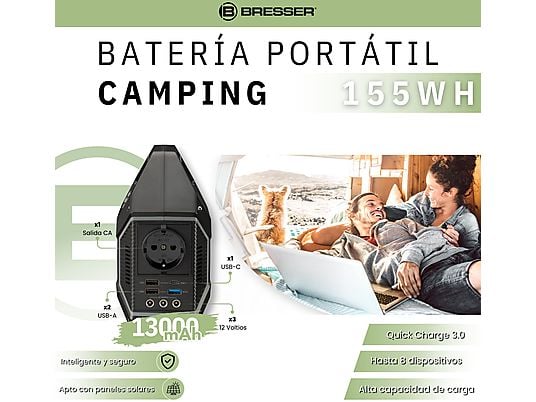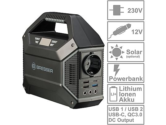 Estación de Energía Portátil 155Wh con Batería de Litio, Salida 230V, USB y 12V – Bresser Kit Bat + P.S 155 W