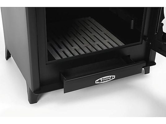 Equipada con una parrilla de fundición de gran tamaño, optimiza la combustión y mejora la vida útil del equipo. Incluye un práctico cajón recoge cenizas para facilitar la limpieza, así como un gancho atizador para mayor comodidad.