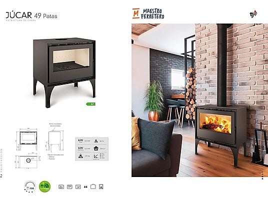 La estufa de leña TJ Jucar 49 Patas es una excelente opción para quienes buscan un sistema de calefacción eficiente, ecológico y de alto rendimiento. Con una potencia calorífica nominal de 6,4 kW y un rendimiento del 85,16 %, esta estufa es ideal para calentar áreas de hasta 88 m², proporcionando confort y ahorro en tu hogar.