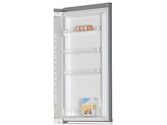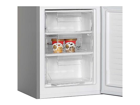 El frigorífico combi Candy CCH1S518EX ofrece una capacidad total de 262 litros, distribuidos en 191 litros para el frigorífico y 71 litros para el congelador. Ideal para hogares de tamaño medio, este modelo compacto de 180 cm de altura aprovecha al máximo el espacio con una distribución eficiente.