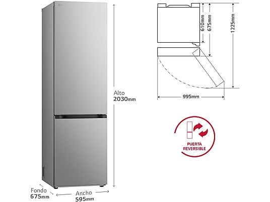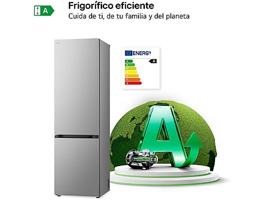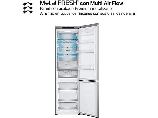 Frigorífico combi LG GBBSJ21DPY, 375L, No Frost, DoorCooling+, Multi Air Flow, 203 cm, 4 Estrellas, Plata
