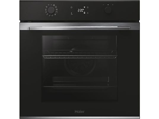 Horno multifunción Haier de 78L con doble limpieza pirolítica e hidrolítica, WiFi, 12 funciones y eficiencia A++. Control inteligente con app y cocción uniforme en 6 niveles.