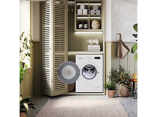 Lavadora Bosch WGE03200ES, Serie 2 de 8 kg, 1200 rpm, con 13 programas y motor EcoSilence™. Incluye SpeedPerfect para tiempos de lavado más rápidos y Higiene Plus para eliminar gérmenes. Pausa+Carga para añadir ropa durante el lavado. Clase energética A y bajo ruido de centrifugado (71 dB).
