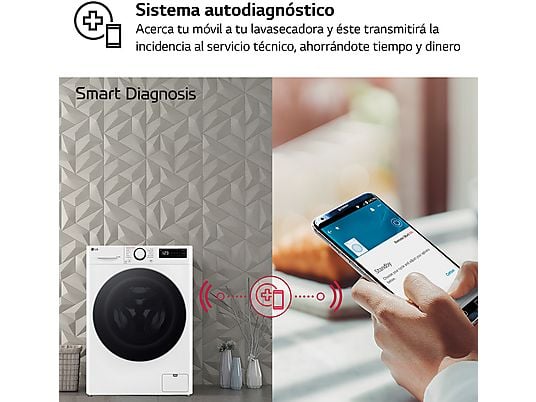 Lavadora Secadora LG F2DR5S09A1W, 9 kg Lavado + 5 kg Secado, 1200 rpm, 12 Programas, Función Vapor Steam™, Blanco