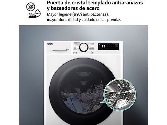 Equipado con la tecnología Steam™, elimina hasta el 99% de las bacterias y reduce alérgenos, asegurando que tu ropa quede higiénica y suave. Además, la función de vapor proporciona una mayor durabilidad de tus prendas, al mismo tiempo que acelera el ciclo de lavado de algodón, dejándote ropa limpia en menos tiempo que los ciclos tradicionales.