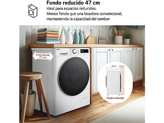Ideal para hogares con espacio limitado, esta lavadora secadora tiene un diseño compacto, con menos fondo que las lavadoras convencionales, pero manteniendo toda su capacidad de tambor. La función de lavado + secado es perfecta para ahorrar tiempo y espacio, mientras que el ciclo AI Wash ajusta automáticamente los parámetros según el tipo de tejido.
