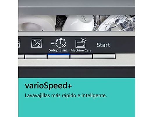 Gracias a la tecnología Home Connect, puedes controlar tu lavavajillas de manera remota a través de la app desde tu smartphone o incluso mediante Amazon Alexa, brindándote una comodidad sin igual. Si necesitas lavar rápidamente, la función varioSpeed+ acelera el proceso hasta tres veces más rápido sin comprometer la calidad del lavado y secado.