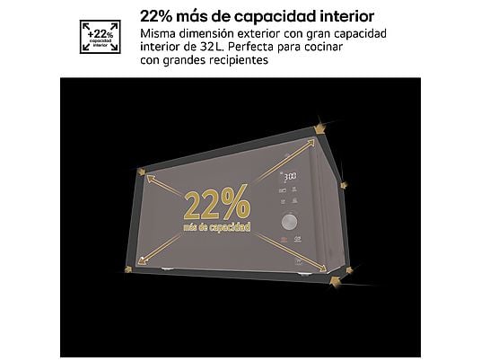 El LG MH7265DPS ofrece 32 litros de capacidad, permitiendo utilizar recipientes grandes.