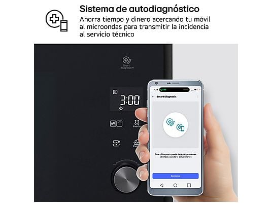El sistema Smart Diagnosis™ permite identificar posibles incidencias acercando el móvil al microondas para facilitar el diagnóstico técnico.