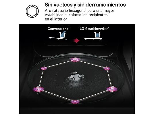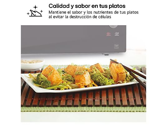 El LG MH7265DPS es perfecto para quienes buscan un microondas potente, espacioso y con tecnología avanzada, capaz de cocinar más rápido, de forma uniforme y con una limpieza muy sencilla.
