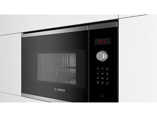 Microondas Integrable Bosch BEL523MS0 20L, 800W, Grill 1000W, 5 Niveles de Potencia, Plato Giratorio 25.5 cm, Acero Inoxidable