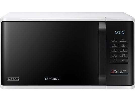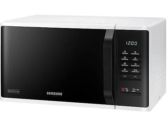 Microondas Samsung MS23K3513AW/EC, 23L, 800W, 6 niveles de potencia, libre instalación, blanco, plato giratorio y descongelamiento automático.