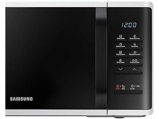 El Microondas Samsung MS23K3513AW/EC combina eficiencia, comodidad y tecnología para agilizar tus preparaciones. Con 23 litros de capacidad y 800 W de potencia, permite calentar y descongelar tus alimentos de manera rápida y uniforme.