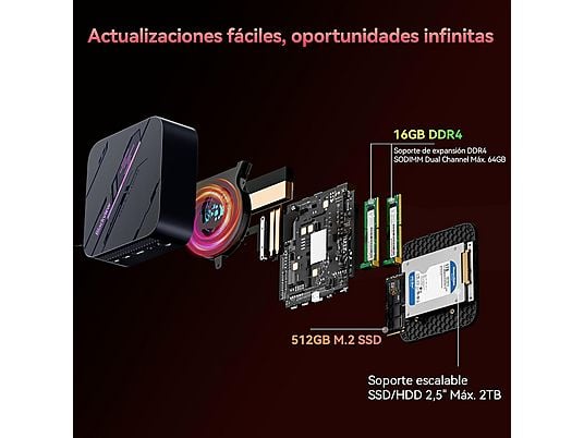 Además, admite expansión hasta 2TB mediante SSD/HDD de 2.5″, asegurando espacio suficiente para juegos, proyectos, multimedia y aplicaciones profesionales.