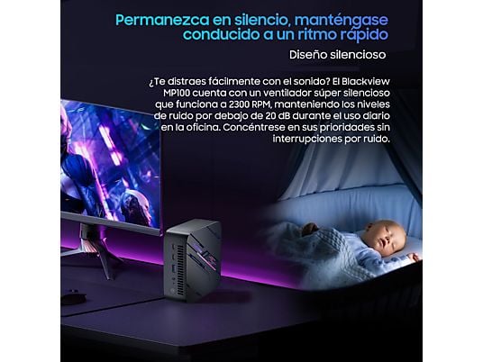 El Blackview MP100 Mini PC combina rendimiento de alto nivel, diseño elegante y conectividad completa, convirtiéndose en una solución perfecta para gaming, oficina, diseño, edición de vídeo y entornos multimedia.
