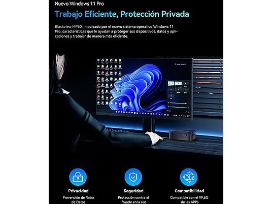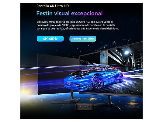 El Blackview MP60 Mini PC es un ordenador de sobremesa ultracompacto diseñado para ofrecer rendimiento eficiente, conectividad completa y un funcionamiento silencioso en cualquier entorno profesional o doméstico.