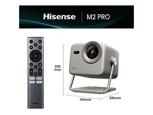 El Hisense M2 Pro es un mini proyector 4K UHD con 1300 lúmenes, zoom óptico 1.3x, autofoco, corrección de keystone, 3D activo y Dolby Vision. Perfecto para cine en casa, gaming o presentaciones, con WiFi, Bluetooth y altavoces integrados de alta fidelidad.