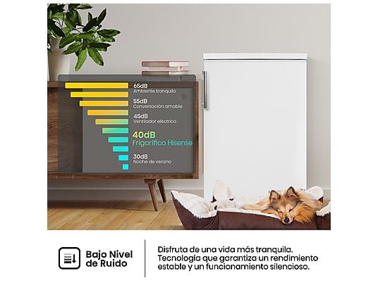 Con solo 40 dB de nivel sonoro, esta nevera funciona de forma muy silenciosa, lo que la hace ideal para cocinas abiertas, estudios o espacios compartidos.