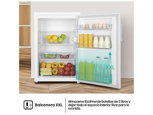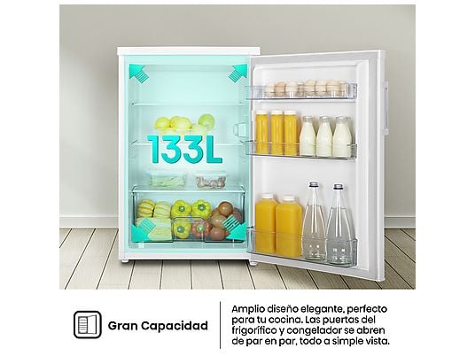 Gracias a su diseño interior optimizado, este frigorífico ofrece 133 L de capacidad, permitiendo almacenar cómodamente alimentos frescos, bebidas y recipientes de diferentes tamaños.