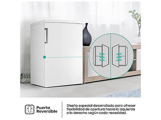 La puerta reversible permite elegir el sentido de apertura, adaptándose perfectamente a la distribución de tu cocina o espacio disponible.