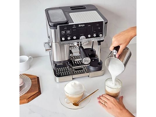 La NINJA Luxe Café Premier ES601EU es una cafetera express 3 en 1 que combina espresso, café de filtro y café en frío en un solo equipo. Cuenta con molinillo integrado con 25 ajustes, sistema automático de espuma de leche, presión de 9 bar y depósito de 2 litros, permitiendo preparar bebidas de calidad barista desde casa de forma fácil y rápida.