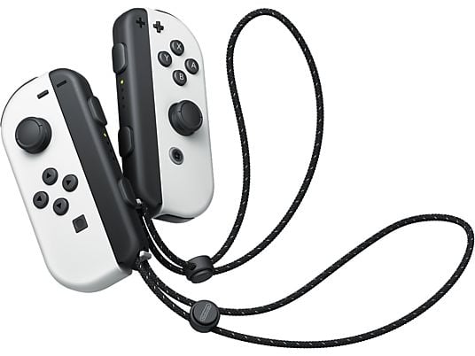Nintendo Switch OLED Blanca, 7”, Joy-Con, 64 GB, pantalla OLED, 3 modos de juego (portátil, sobremesa, TV), base con puerto LAN y altavoces integrados.