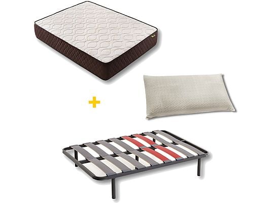 El somier completa el pack con una estructura robusta y silenciosa, equipada con 5 patas de acero de alta resistencia, doble lámina y barra de refuerzo central. Su diseño favorece la ventilación del colchón, evitando la acumulación de humedad y prolongando la vida útil del conjunto.