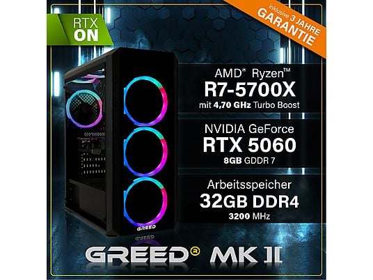 PC Gaming GREED MK2 AMD – AMD Ryzen 7 5700X 8C/16H, 32GB DDR4, 1TB SSD, NVIDIA GeForce RTX 5060 8GB, Windows 11 Pro, Negro