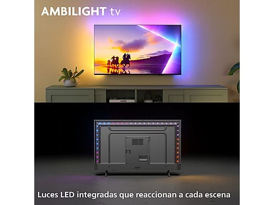 Vive una experiencia de entretenimiento envolvente con el Philips 43PUS8510/12, un televisor QLED de 43 pulgadas que combina tecnología avanzada y diseño elegante. Gracias a Ambilight, las luces LED alrededor de la pantalla reaccionan en tiempo real a cada escena, extendiendo la acción más allá del televisor y creando un efecto cinematográfico único.