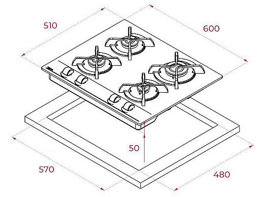 4 quemadores de gas de alto rendimiento con autoignición integrada.