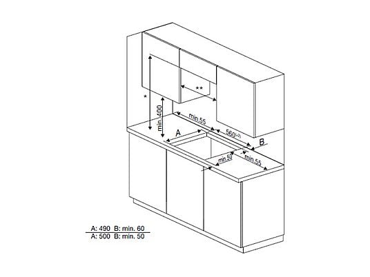 Hueco mínimo de encastre: 56 × 49 cm