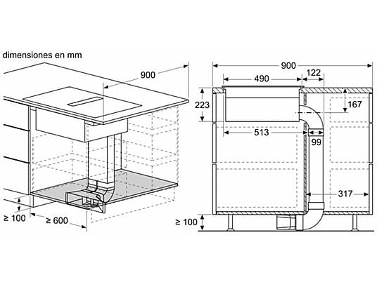 - Inducción Air Plus: El extractor se activa automáticamente para mantener el aire limpio durante la cocción.